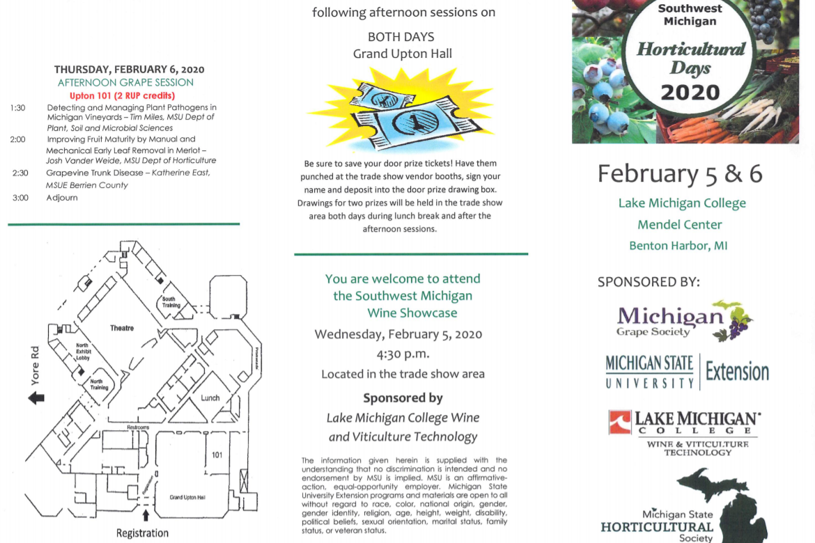 It’s here!! Southwest Michigan Horticulture Day is upon us. Registration details coming soon! Categories: Events, News, Wine EducationJanuary 23, 2020 Share this post Share on FacebookShare on Facebook Share on XShare on X Pin itShare on Pinterest Share on LinkedInShare on LinkedIn